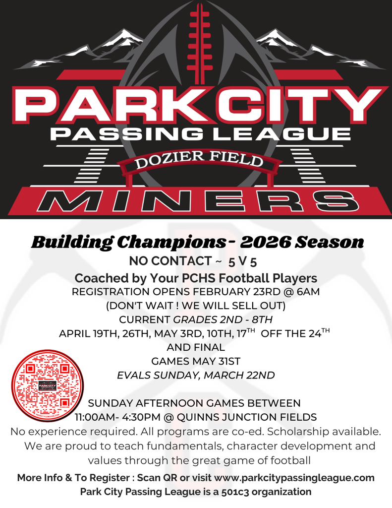 All proceeds from the event will directly benefit the Park City football and cheerleading programs. Every dollar raised will help fund state-of-the-art equipment, ensuring local athletes and cheerleaders have the resources they need to train safely and perform at their best. The Park City Passing League is proud to be more than just a 501 c3 football league. It is a community-driven organization committed to empowering student-athletes and uplifting those in need throughout the greater Park City area. But its mission doesn't stop there. Each year, Park City Passing League extends its reach by donating funds to local organizations in need, neighboring high schools, individual